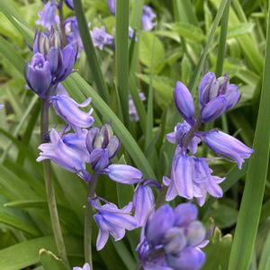 釣鐘水仙 別名スパニッシュブルーベル、シラー・カンパニュラータ 素敵な色合いですよね✨ バックのギボウシの美しい葉っぱと共に…💚💜