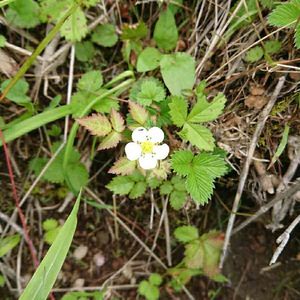 散歩の途中🚶♂️ ヘビイチゴと違い、所謂イチゴの仲間です🍓 花は白色で径1.5-2.0㎝、丸い花弁、雄蕊は黄色で長さ3-4㎜になります🥰 果実は花後に径1㎝の球形から卵形になり、赤熟し、食用になります😋 4月17日撮影 バラ科オランダイチゴ属 多年草 白花蛇苺 別名:モリイチゴ 原産地:日本、樺太、韓国 開花期:5-7月