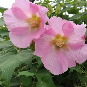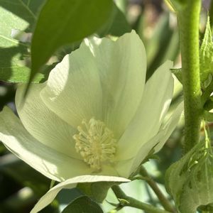 播州織のイベントで綿の種をもらったので蒔いてみたら、花が咲いたよ 綿できるかな?