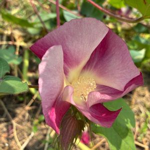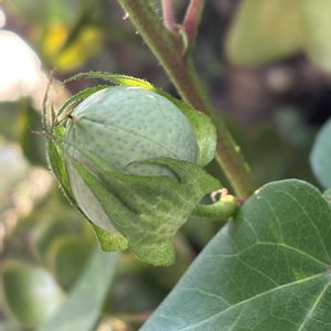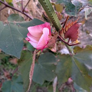綿の実 黄色の花が咲いたはず 先日咲いたのですが、萎れてから見つけたので、なんとなくピンク色っぽくなってました