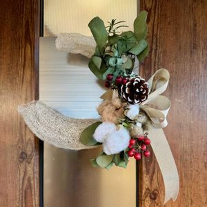 早いもので今日から12月。 U字に曲がったヘチマと我が家にある物でリースを作りました。 毎年早めに片付けをしなきゃ…と思いつつなかなか大掃除が出来ない私。 今年こそは!