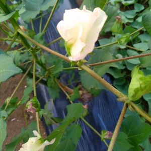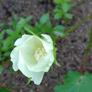 今日の花『綿』 4種類植えてみました 白、グリーン、茶、赤 どれがとれかわからなくなりました😅 今のところ白い綿だけ…