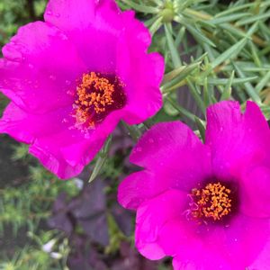 ポーチュラカ(ハナスベリヒユ) 梅雨の最中ですが随分と咲いてきました🧐 手の掛からない夏の花ですねー😊 多年草だそうですが越冬するよりも一年草として咲かせています😃 何と栄養価が高く食用になるそうです🙃