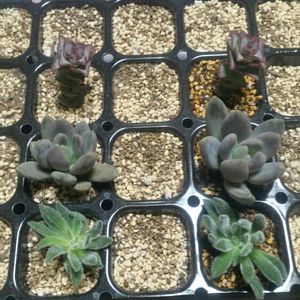 母からもらった多肉で実験。 左の三種は水なし。右の三種は湿らせた土に挿しました。 本当は土に挿さず根が出るまでおいとく実験もしたかったのですが、ネットであれこれ調べてみたら失敗が多く、土に挿す方が断然生育が早いっぽいのでこの二種類で。