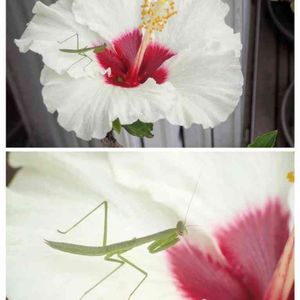 ハイビスカス・ボレアスの上に、ちびちびカマキリの赤ちゃんが乗っていて可愛い~😍🌺撮ったのは昨日の日中でしたが、夜になってもまだ同じとこにいて、よっぽどこの場所が気に入ったみたい💕