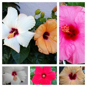 🌺 アドニス 💞 Wで咲きました🤗 赤 白 ピンク 黄色 の ハイビ🌺 毎日 どれか一輪咲いてくれています😃💞🌺 次は ミセスユミ🌺 かなぁ? タノシミ😊