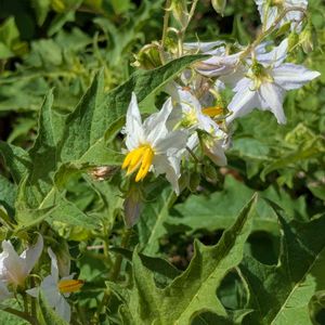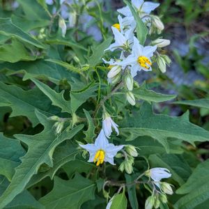 ワルナスビ(悪茄子) ナス科 ナス属 5~8月 20~90cm 帰化種 多年草 根茎を長く伸ばして広がる ⚠有毒植物⚠ 全草にソラニンなどの毒性アルカロイドを含み、特に果実に高濃度で含まれる (ソラニン∶ジャガイモの芽に含まれるやつ) 葉は互生 長さ8~15cm、幅4~8cmの長楕円形で、縁には波状の大きな鋸歯が3~4個ある 葉柄1~3cm 茎や葉の両面に星状毛がある✧ また茎や葉の主脈上には鋭い刺がある 花径2~3cm 茎の途中からでる太い枝の先に6~10個、集散状につく 花冠は淡紫色または白色で、先が浅く5裂して星形~五角形を呈する 雄しべ5個∶葯の先端に穴があき花粉を散らす (孔開葯) 雌しべ1個∶柱頭緑色 果実(液果)は直径約15mmで黄色く熟す☠️タベルナキケン ――――――――――――――――――――――――――― 花は異型花柱性で、雌しべが葯から突き出る「長花柱花」と、雄しべよりも短くなる「短花柱花」がある 画像1枚目では長花柱花、2枚目では長花柱花と短花柱花(中途半端に短いが…)が同じ花序内に、3枚目では短花柱花が写っていると思う 検索先で見る短花柱花の雌しべは本当に短くて未発達な印象でした 画像内の短い雌しべは、確かに短いけれども、短いだけでそれが何か?とでも言いたげな雰囲気というか(笑) 長花柱花の雌しべと太さはさほど変わらない感じに見えたんですよね 結局のところ-両性花と雄花-くらいの感覚でいいのでしょうか…?🙄 実際、異型花柱性を示す同一個体内において、長花柱花は雌花的(受粉するという意味で)な役割を、短花柱花は雄花的な役割を担っているそうなのです これには特定のハナバチ類が深く関わっていて、ナス属の多くにみられる「振動送粉」と関係しています その特定のハナバチ類がいる環境かどうかが異型花柱性を示すかどうかの鍵となっている可能性があるようです しかも蜜を産出しな…∞№∈&®©¡£÷✡www〜💣️ ※ ワルナスビは自家不和合性ですが、開花後数日以内に他家受粉できなかった場合、自己花粉でも受粉できるようになるのだそうです(遅延自殖) 😴 誤って理解している可能性がありますので、ここまで読まれた方は逆にご注意下さい⚠👋