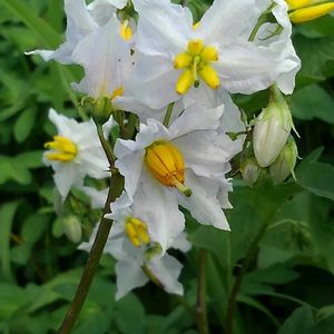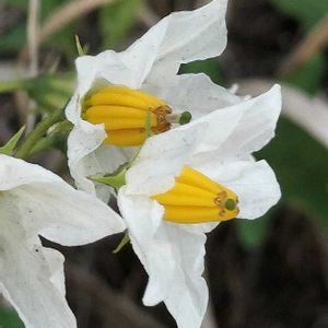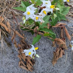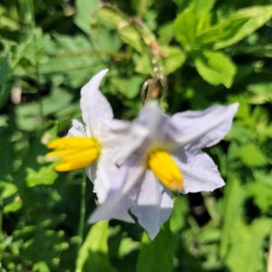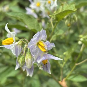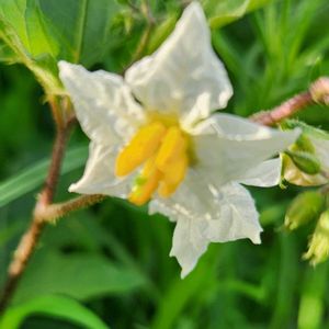 白いお花が河川敷にたくさん咲いていました😊 ワルナスビ。 ナス科ナス族のお花。 白いお花と黄色い蕊がかわいいお花ですが、要注意外来生物とのこと。 去年まではあまり目立たないくらいだったと記憶していましたが、今年はあちこちで見ました。