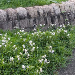 〜野の花5種〜 台風5号の影響で、雨が降ったり止んだり、晴れ間も覗いたり、不安定なお天気です 昨日まで涼しい日が続いたので久しぶりのウォーキングをしました そこで見つけた野の花です ①イワダレソウと赤まんま(イヌタデ) どちらも小さくて可愛い🩷 コンクリートの道路際にぎっしり イワダレソウの花言葉「忍ぶ恋」 赤まんま(イヌタデ) 花言葉「あなたのお役に立ちたい」 ②アキノタムラソウ 名前に秋が付いていますが7月から咲き始めます 花言葉がとても素敵です 「自然のままのあなたが好き」 「善良」 ③草花火 別名タリヌム・カリキヌム 夏花火 道端で咲いていたのですが野の花というよりどうも多肉植物のようです 花言葉「燃える心」 ④ヒルザキツキミソウ 北米原産の帰化植物 雌しべの先端が十字型をしてるのが特徴 薄いピンクが可愛らしい 花言葉「清純」「無言の愛」「固く結ばれた愛」「自由な心」 ⑤ワルナスビ 名前にワルが付いているのでどうしても悪いイメージになります タチが悪い生態により名付けられたので仕方ないかな? 花言葉も「悪戯」 草地にいっぱい広がって咲いていました *台風情報に気をつけてお過ごしくださいね