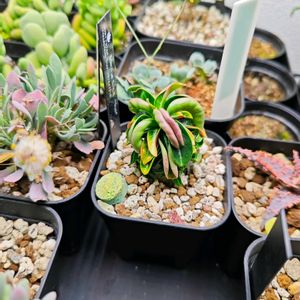 ①ドーセットホーン タイ ノギスを購入して、届くのを待ってます。 が、塊根が隠れるほどの葉数です。 ②ハイブリッド ジャパニーズ ジャイアント ネットで検索しても、まったく出てこない。 そんなアデニウム。 ブラックジャイアントは出るので、それに 近い姿だと…ヒョロっとした感じになりそう。