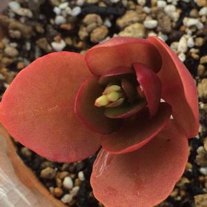 今年の春、友達の家で咲いてたピンクの花が可愛くて チョンパして持ち帰った子 蕾が付きました 私が多肉植物に興味を持つようになったキッカケの多肉さん🍀