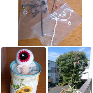 こんにちは😊休日。 ちょっと🤏ハショリます😗🖐️ 先日、さわサンより、スヌ様Picなど色々 🎁企画当選致しまして、 受け取りました〜からの、 多肉友さんから 前に頂いた アロエ系。お花咲きそう〜。🙄✌️ それから、昨日は、日頃からお世話になってる、ココガーデンさんにて ユバラさんとアオキ塗料さん Colabo リメ缶デコパwsに 参加して来ました。ヽ(´ー`)ノ 普段選ばない花柄〜夏🎐をImageしてヒマワリ缶 完成✨。 オヤジさんの1番風呂〜(笑) 台風🌀こっち来そうな予報(T_T)