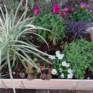 💐耐寒性の有るお花で、寄せ植えしてみたよ。 左ヤブラン 前大文字草・アリッサム・オキザリス 後キンギョソウⅩ2