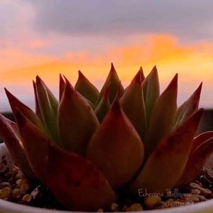 おこんばんわぁ。 今日はリトルミッシーを求めて園芸店パトロールしてきましたが、不発😭 そして園芸店のハウスな室内があつあつ蒸れ蒸れで我慢できず😵💫♨️ 土買ってさっさと退散してきました💦 あらためて多肉農家さん達👩🌾👨🌾の労働環境を思い、尊敬の念を抱きました。 ありがとう多肉農家さん🦀💕 あ、画像は脈絡の無いハロウィンさんと夕焼けでーす😆