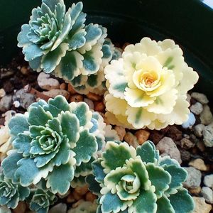 セダム アトランティス 斑入りの葉が特徴的な常緑のセダムで 季節によって葉は白からクリーム色にまで変化します 耐寒温度は−25℃(わぉ!) ローメンテナンスで庭植えなら准水も不要とのこと 花壇の端っこに植えっぱなしで何もせずに綺麗な姿を見せてくれます☺️ セダムだからきっと増えるよね〜😍