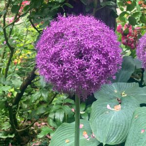 アリウム・ギガンチウム 紫色のポンポン🥰 風に揺られてゆらゆら♬ ラッキーのちょい調べ👀👇 植物名 アリウム・ギガンチウム 学名 Allium giganteum 和名 花葱(はなねぎ) 科名 ユリ科 属名 アリウム属 原産地 中央アジア アリウム・ギガンチウムは、初夏に直径15cmの巨大なボール状の花が開花します。つぼみの時点では直径5cm程度ですが、花の開花とともに直径が大きくなります。背丈も花のサイズも大きく、開花した姿はインパクトがあり、庭のフォーカルポイントになります。 小さな花が集合してボール状の形となっている花は、いっぺんに咲かず少しずつ開花していくため、花持ちが良く切り花としても人気です。 ஐ ஐ (*˙˘˙*)ஐ ஐ
