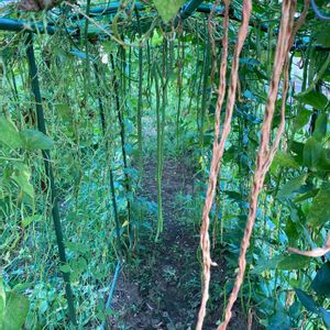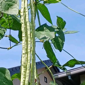 今年初めて三尺ささげの種を蒔いて育てています🌱 はじめ気が付かなかったのですが、にょろにょろと沢山ぶら下がってました😁