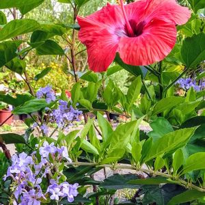 ハイビスカス🌺ハッピーオレンジ このハイビスカス… 冬越ししてから一輪だけ咲いて ずっと咲いてなかったけど… 今日やっとまた咲いてくれた💓 デュランタ スカイラブも沢山咲いてきた〰️💞