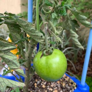 娘が学校で育てている中玉トマト。夏休み前に持ち帰ってきました。葉がしわしわ水やりしなきゃ!