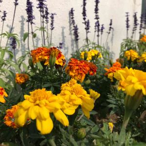 娘が小学校の行事で作ってきた寄せ植え( ☆∀☆) 丸のプランターと四角のプランターと。 ほんとは親子行事だったけど、雨で出来ずに当日はドッジボールになったから平日に子供達だけで植えたらしい。 花の種類多くてびっくりした😄 玄関に飾っています😆 嬉しいです😆