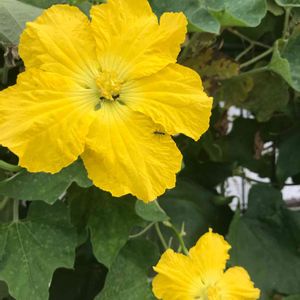 姉の不登校に感化され、朝から学校に行きたくないとグズグズの妹ちゃん… 毎朝学校に一緒に通い出し、少し落ち着いてきた様子😥 そんな私は毎朝花壇の観察😊 大きなヘチマが出来てました。