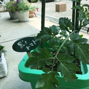 学校から、トマト🍅の苗 牛乳パックに入って届きました(o^^o) 植えかえて、タグ+ 🍅🍅🍅🍅🍅🍅