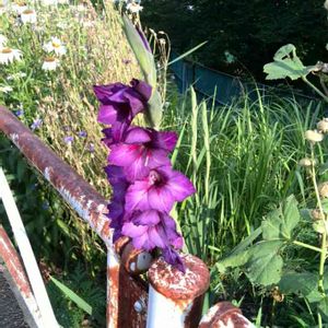 小学校の裏のタチアオイ 赤ははじめてみた(笑)