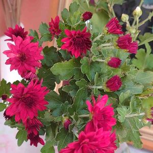 イエキク 家菊 キク科キク属の多年草 日本の花といえば “菊” わたし、てっきり菊は在来種だと思い込んでいました。が!原産は中国なんですって! 中国の長い歴史の中で改良されたものが奈良時代に 入ってきたのだそうです。 野に咲く「野菊」にたいし 栽培されるキクを「イエギク」と言います。 イエキクを大別すると 日本で作られた品種を「和菊」 欧米で作られた品種を「洋菊」 更に 和菊は、 園芸がとても盛んだった江戸時代に 創りだされた「古典菊」があったり、 花のサイズで分類される 「大菊」「中菊」「小菊」などがあり、それぞれ品種がとても多いですね。 この写真は、お隣りの区の小学校。 誇らしげに咲いてる姿に 惹かれたので フェンス越しですが ジャンジャン撮ってみました。 よし!上手くいったぞ! 手前にフェンスがあるように見えないでしょう。 よく見ると 鉢に名札が刺さってました。 たぶん 高学年の子たちが(6年生かなぁ) 1人一鉢育ててるんだなぁ〜って感じです。 どれも丁寧な一本仕立で 美しく咲いていました。 撮影 2021 11/14 小学校