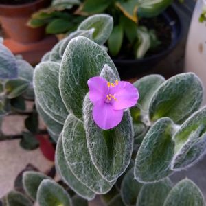☆庭のお花達☆ 昨日友達から一鉢頂いたお花 名前調べたら トラデスカンテイア・シラモンタナ ツユクサ科、ムラサキツユクサ属 別名 ホワイトベルベット、 ビロードツユクサ、 白雪姫、白毛露草などありました 今朝、一輪ピンクのお花が咲いていました〜 葉は白い毛に覆われモフモフ 私的には、ホワイトベルベット と呼びたい😅