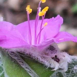 おはようございます☔ トラデスカンティア シラモンタナ お花は径3cmほどのピンク色3弁 可愛いお花が咲きました