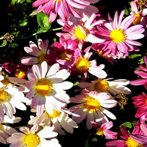 白い菊の花が満開です。陽に照らされ ややクリーム色っぽく見えます。