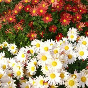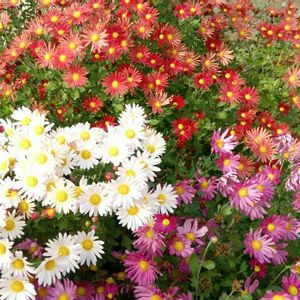 うちの庭に菊がいっぱい咲きました。上から遠景、中景、近景の写真です。