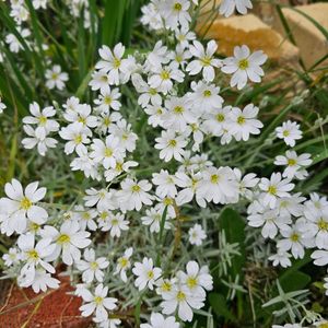 シロミミナグサ(白耳菜草) 別名 ナツユキソウ(夏雪草) ナデシコ科 園芸種 原産地 ヨーロッパ グランドカバーに適してるだが、家では増える場所が確保出来ず、 失せそうになりながら何年も 頑張って咲いてます。🌸🌸🥰