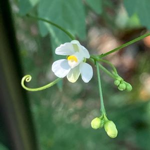 フウセンカズラ •*¨*•.¸¸♬︎ 子供が幼稚園でもらってきた種を1つ植えましたෆ̈ 可愛らしい小さな白い花からたくさん実がなっています(⑅︎•ॢ◡︎•ॢ).。*♥︎ この実の中にはハート模様の種がっ❤︎