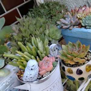 こんにちは😊 今年7月以来の久しぶりの投稿です🫡 1週間の休みをいただいて… 箱根旅行に行ったり、園芸店のイベントに参加したりして 充実した時間を過ごしました😅 暑かった夏は何もやる気が起きず💦 多肉ちゃんもお花たちも放りっぱなしでしたのでようやく荒れ果てた小さな庭や玄関前を片付けたり 9月の誕生日に娘がプレゼントしてくれた多肉さんの寄せ植え🌱を仕立て直してみました🤭 うちで暑い夏を乗り越えてくれた多肉さんたちだけですが… やっぱり楽しいものですね✌️ カスミ草の苗をいただいた職場の人に家にある多肉ちゃんとカバさんの鉢で小さな寄せ植え🌱を作ってみました😚 明日からは仕事です…😆