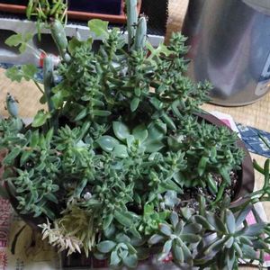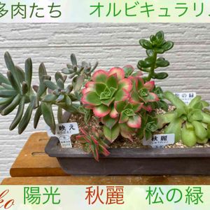 多肉さんたちの秋麗が、秋の麗しい色になりました🧡 陽光も、松の緑も、花が終わり、子供ができました 根も下から出てくるようになり、植え替えた方が良いのか、 わからないので、悩んでいます‼️