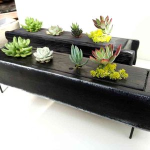 穴空きボックス。多肉植えました🎵 足付きで自作の箱です🎵 黒い箱で多肉がきれいに見えます✨寄せ植えじゃなく穴植ですね☺️