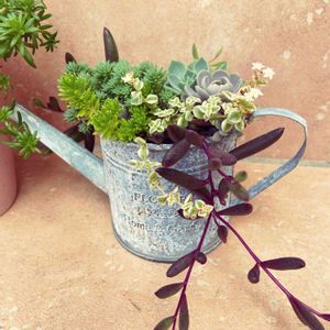 ブリキ缶の 寄せ植え ブリキ缶に💕寄せ植えを‥ ⇩の白牡丹さんは葉挿しから ギュウギュウ💦😂