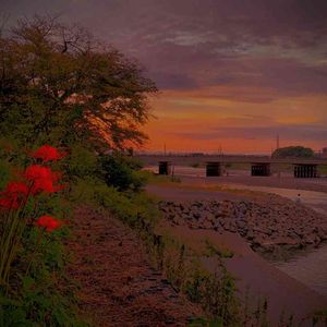 宇治の河原で 見かけた花と 見惚れた夕陽 いっとき放心 宇治市 20190928