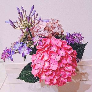 ☂️雨降り前に…☂️ 久しぶりに出ました❗ 紫陽花の盛り合わせ💠 アガパンサス入り🎆