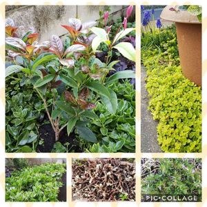 今日のお庭です☺️ 💠キンモクセイ、若葉がどんどん大きくなってます😆 💠マルバマンネンクサ、黄緑が鮮やか✨✨ 💠グリーンサンローズ、花壇からはみ出した所をカットしたら、上向きに伸びてきました➿ 💠白絹姫の芽が沢山でてきました🌱 💠芝桜、蕾ができてます🤭