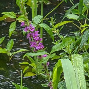おはようございます 今日も🌧️ですね ミソハギ(禊萩) 別名(盆花)(精霊花)水掛草 お墓やお仏壇に盆花として知られる植物です。すっと長く伸びた茎の先に、サルスベリを思わせる紅紫色のフリルが効いた可憐な花を咲かせます。 お盆の迎え火を焚く前に、この花で周囲に水をまく風習は現代でも各地で広く見られます。 水生植物、山野草、 ミソハギ科ミソハギ属の多年草 原産地は日本 開花期間7月~9月