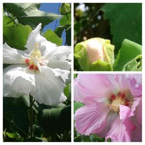 スイフヨウ🌼 朝は真っ白な綺麗な花ですが 少しづつピンクに色付いていきます🌸 酔芙蓉 名前の通り 少しづつ色づく様をお酒に酔って赤くなる事になぞらえているようです🍶💞✨✨