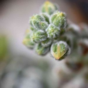 モケモケの中からすみれ色。 開花がゆっくり近づいてきましたよ。