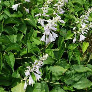 朝陽の中のコバギボシ おおばのギボシに比べて お花に色があり綺麗です 話は変わりますが 昨夜 友人の庭に熊が出て 飼っていた烏骨鶏が二羽 やられました😱