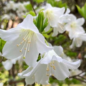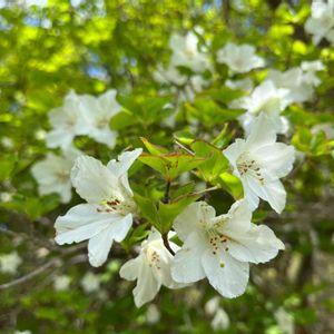 シロヤシオ(白八汐、Rhododendron quinquefolium)は太平洋側の山地に生息するツツジ科ツツジ属の落葉樹である。ブナ帯に生育し、時に直径数十cmの大木となる。葉は倒卵形で、縁が薄く赤く色づくことがある。 枝先に5枚の葉が輪生状に付くことから、別名としてゴヨウツツジ(五葉躑躅)とも呼ばれる。その他、シロヤシオツツジとも。栃木県花ヤシオツツジの一つ。 敬宮愛子内親王のお印としてシロヤシオの花が用いられている Googleより☝️ 初耳、初見のお花👀✨✨ ツツジ科なんですね 素敵なお花😍 昨日のお散歩🚶♀️