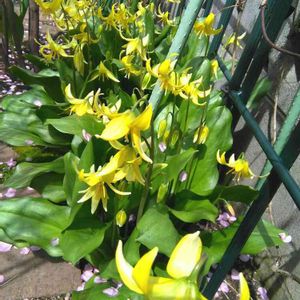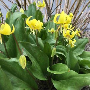 ブルーベリーの木の下で 忘れられていた黄花カタクリ🌼が 咲きました。 こんなにたくさん咲いてくれるとは… ごめんなさい😭