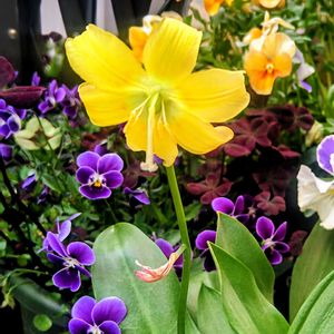 黄花カタクリ今年も咲きました💛 ミヤマオダマキ可憐な薄パープル💜 昨シーズンのサフィニア🩷 4月初めにお外に出した時 思いっきり切り戻しました🌱 復活して来ました🌱