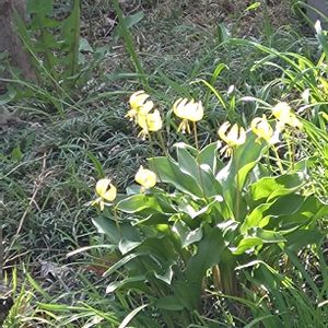 黄花カタクリ 庭の片隅に咲く 黄色のカタクリ 先日 ピンク色のカタクリの群生地を見たが 黄色だと山全体の風景が変わるでしょうね!