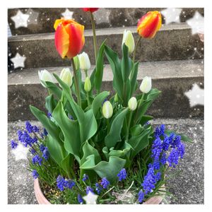 お疲れ様でした❣️ 太陽☀️は出ませんでしたが湿気がある一日でした💦 一昨年寄せ植えにしたチューリップとムスカリを去年適当に植えたらバランス良く咲いてきてくれました😍 一昨年から植えてるキバナカタクリも去年植え替えしたら球根が無くて心配しましたが沢山葉を出して来年が楽しみです👍 昨日仕事先からもらってきたレタス🥬をプランターに初めて植えて見ました これからどうなるか心配です虫🐛避けしないとダメですね😅